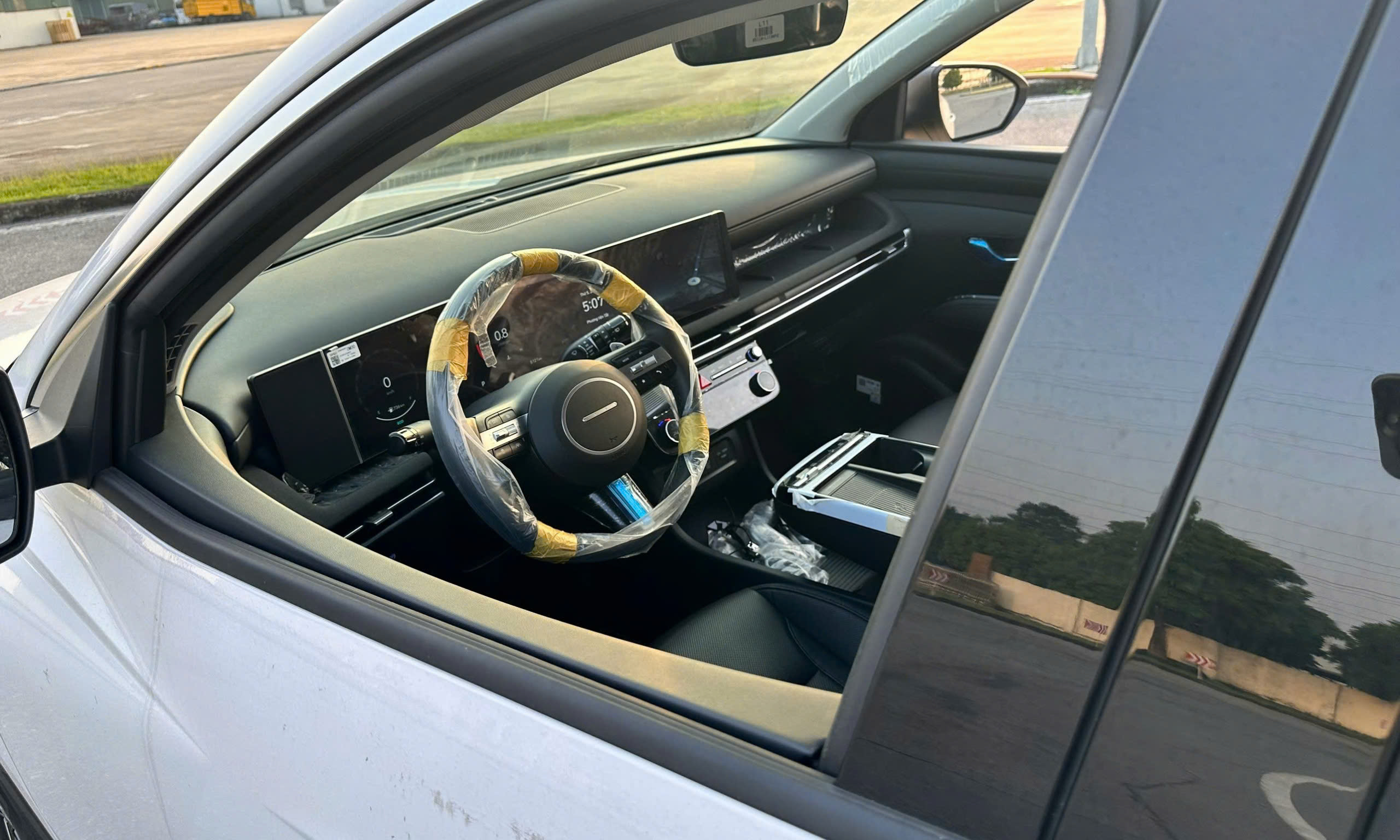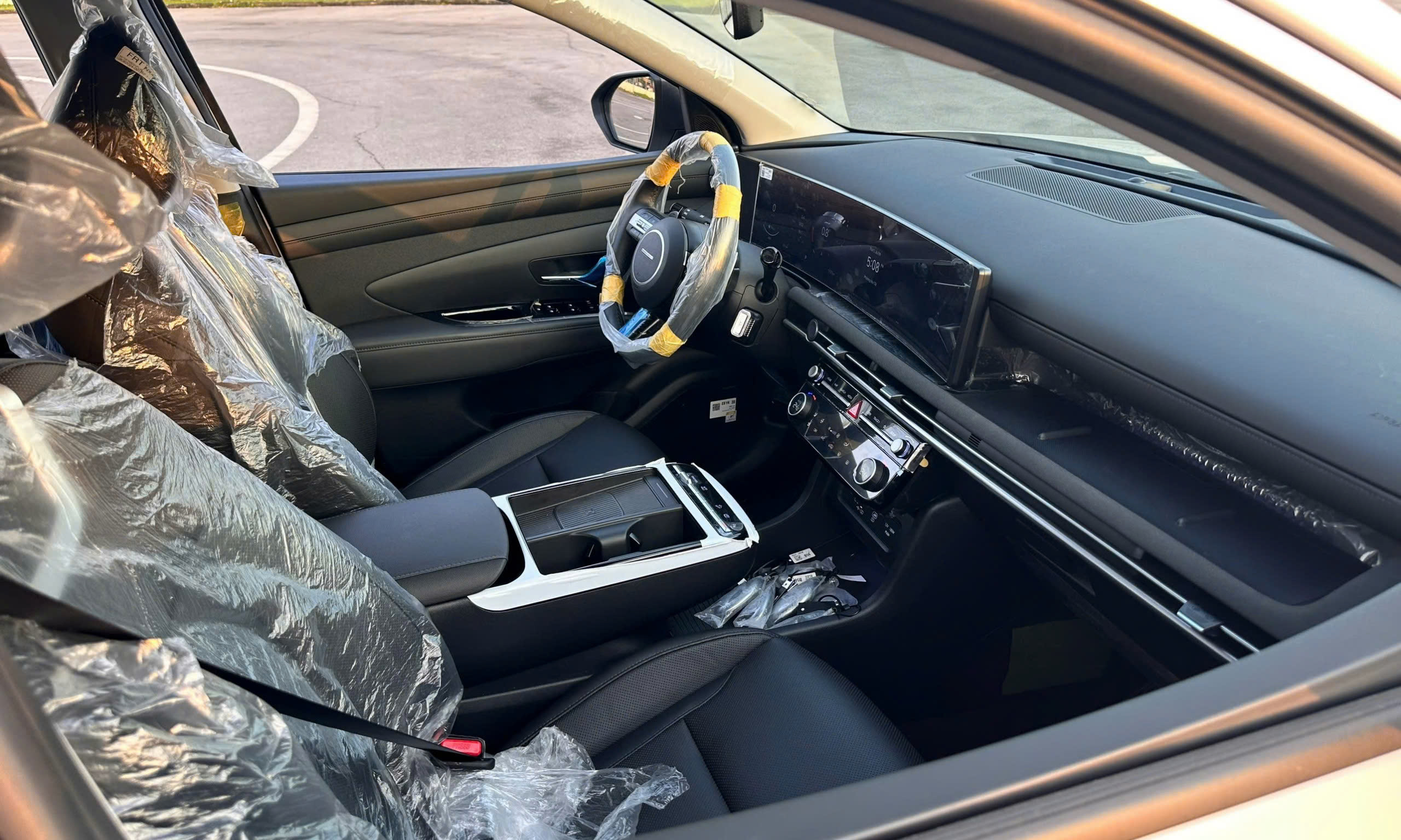 Trên Hyundai Tucson 2024, yên ngựa phân tách ghế lái và ghế phụ đã được thiết kế tách rời, không còn liền khối với táp-lô như trước. Vô-lăng mới có tạo hình 3 chấu, loại bỏ logo Hyundai ở giữa, tương tự mẫu xe điện Ioniq 5.