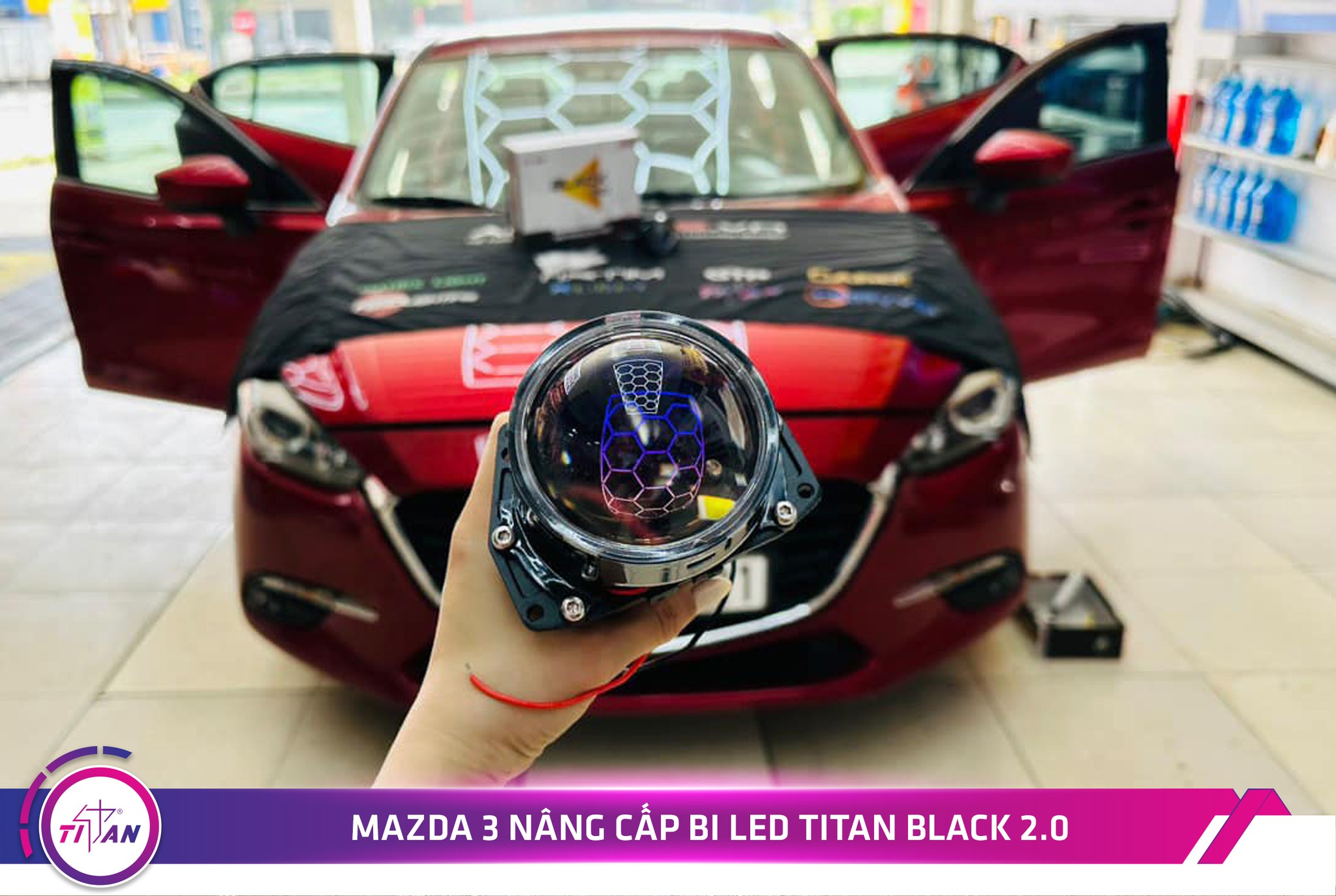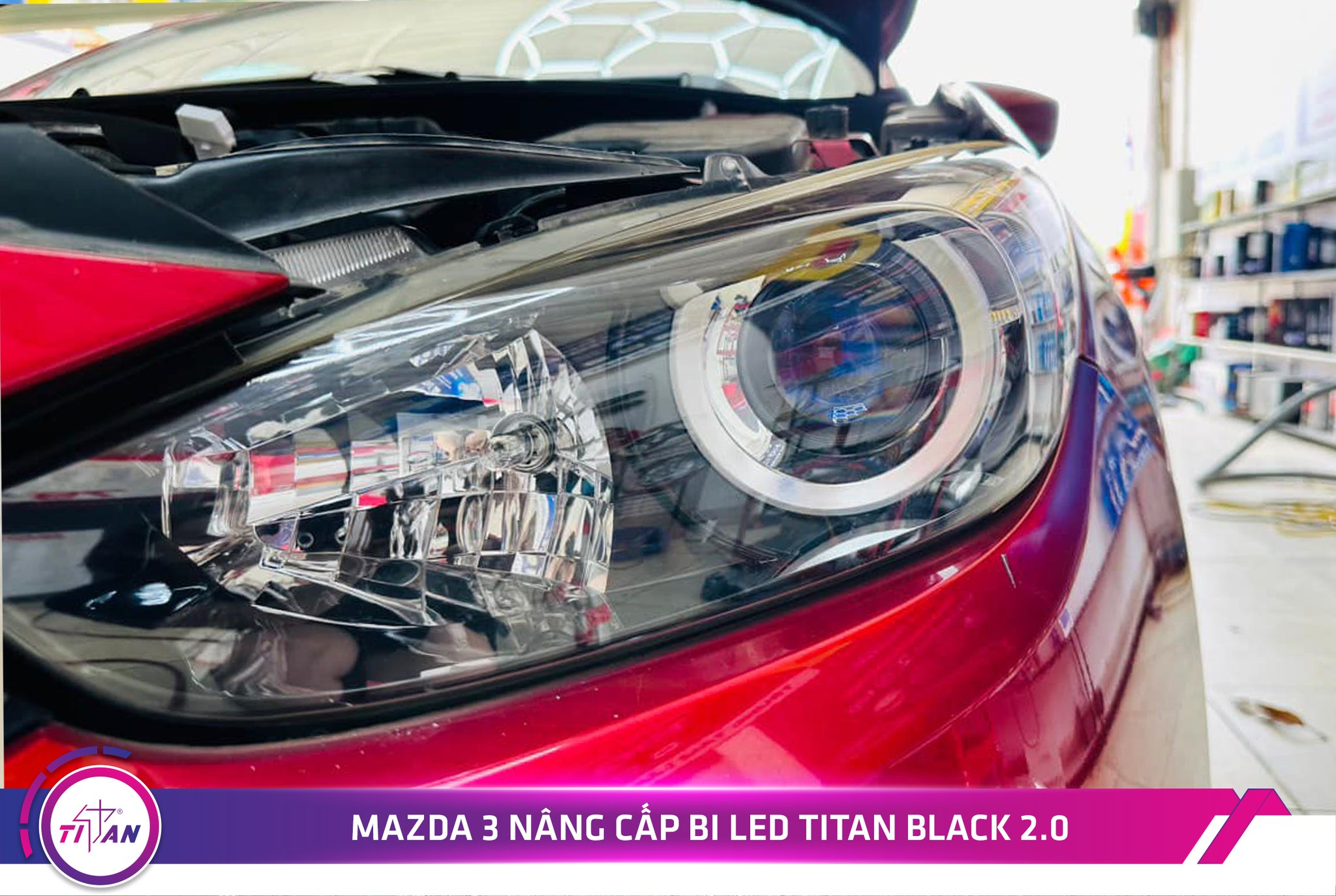 Mazda 3 là dòng xe được khách hàng tin tưởng và ưa chuộng ở thị trường Việt Nam bởi thiết kế sang trọng và tiện nghi. Tuy nhiên hệ thống chiếu sáng của xe không đáp ứng được nhu cầu thường xuyên di chuyển của chủ xe nên anh quyết định lựa chọn Bi LED Titan Black 2.0 làm sản phẩm tăng sáng cho xế của mình nhằm cải thiện khả năng chiếu sáng, đảm bảo tầm nhìn khi di chuyển của mình.